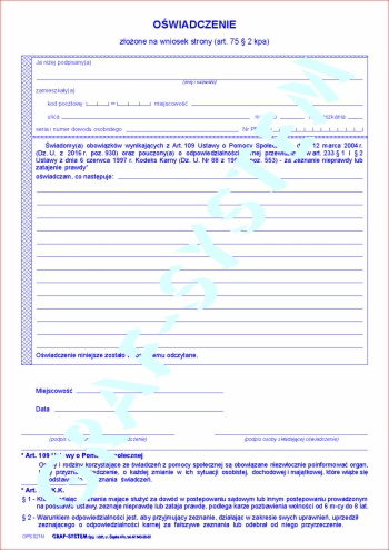OŚWIADCZENIE ZŁOŻONE NA WNIOSEK STRONY (100 SZT)